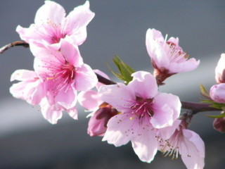 *桃の花は枝に沿うように花が咲き花びらの先が尖っている