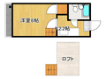 | 間取り | 洋)6帖+ロフト)4帖、K)2帖 (Bタイプ) 東向き | 専有面積 | 18.72m 2 ( 5.66坪 ) |