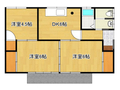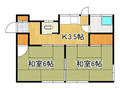 | 間取り | 和)6帖×2、洋)4.5帖、K)4帖 南向き | 面積 | 50.1m 2 ( 15.15坪 ) |