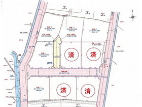 設備:公営上水道・公営下水道 接道状況:中央市道4255号線に接道 中央市道4776号線に接道 開発道路5mに接道 ※現在地目は雑種地ですが、宅地へ地目変更してお引渡し。 区画⑧:敷地延長40.62㎡ 有り |