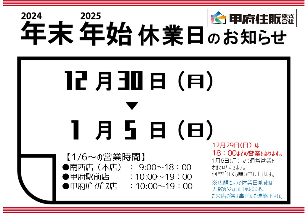 日頃は格別のご愛顧を賜り、誠にありがとうございます。下記の通り年末年始休業とさせていただきます。