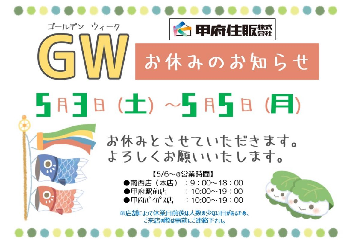 ゴールデンウィーク休暇のお知らせ