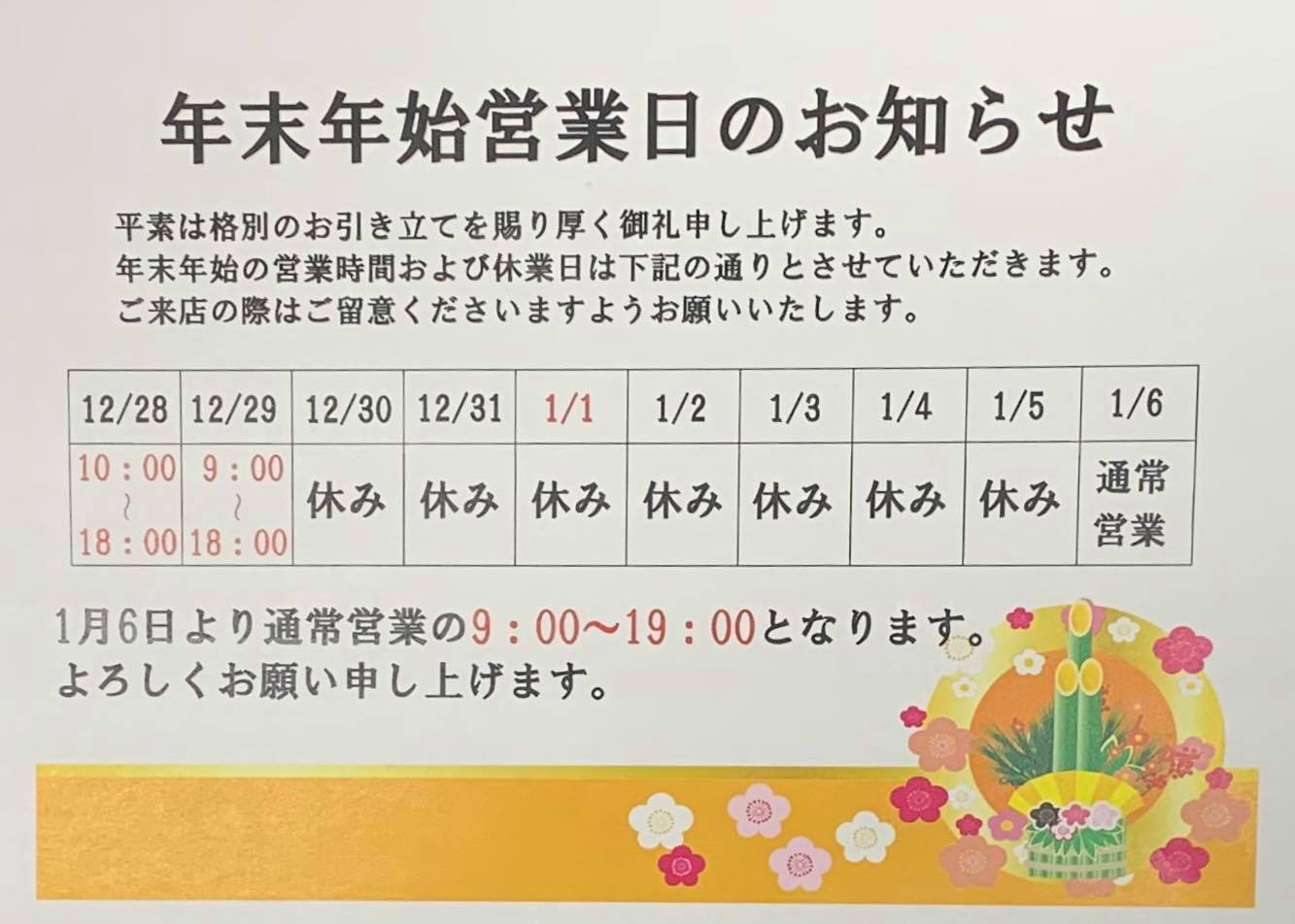 年末年始営業のご案内